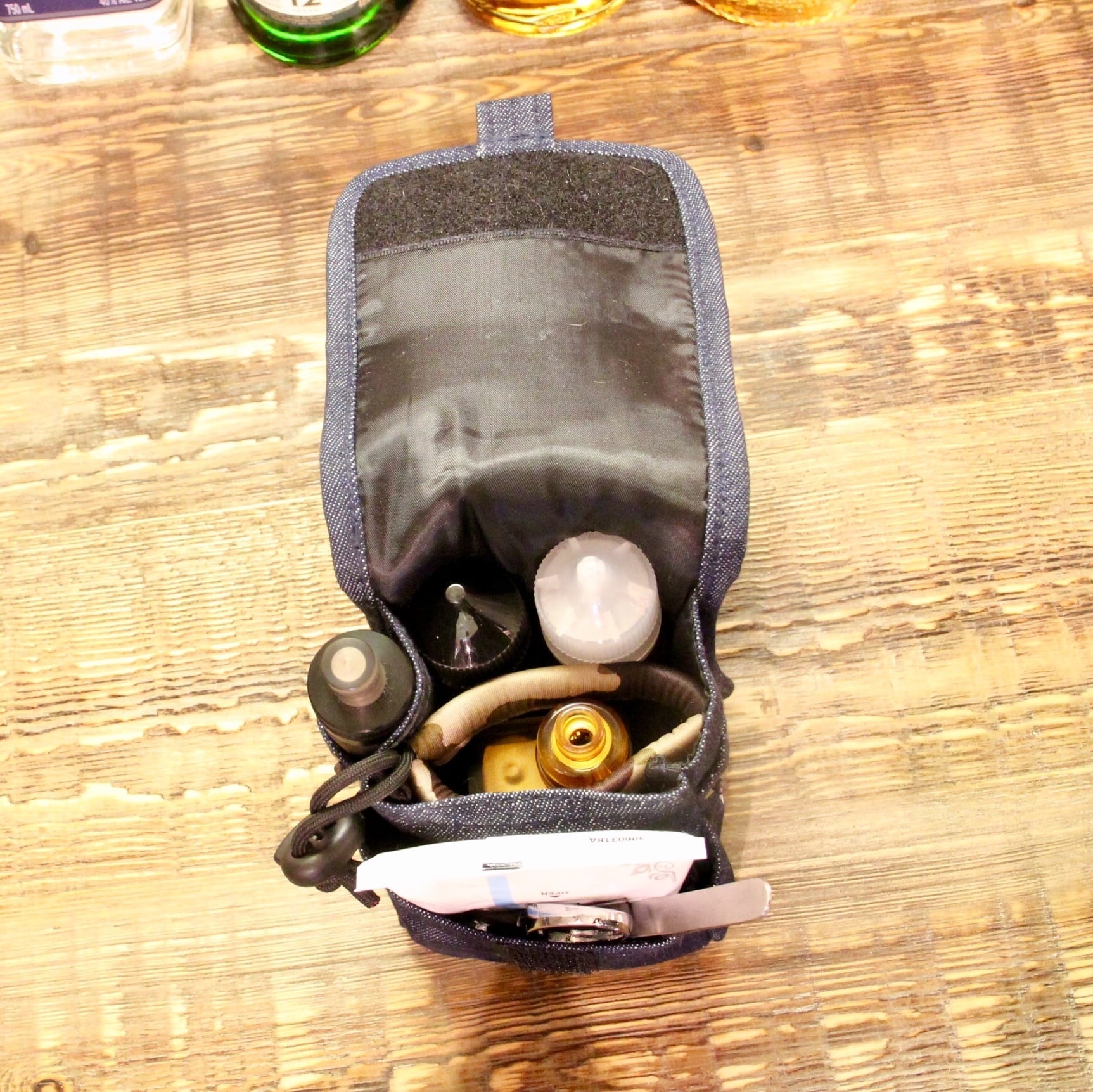 ポケットやバンドがあり、MODやリキッド、ビルド用品からウェットティッシュなどを持ち出す際にとても重宝します。